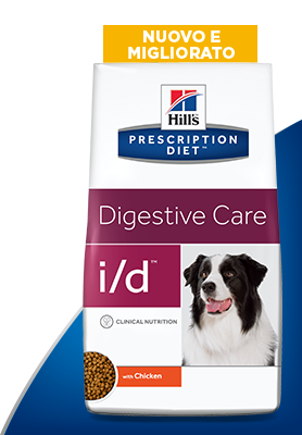 Ora la nutrizione clinicamente provata di Prescription Diet™ i/d™ contiene nuovi ingredienti per una migliore digestione, oltre a un aroma più intenso e alla nuova forma a disco delle crocchette che la rendono irresistibile per i cani: